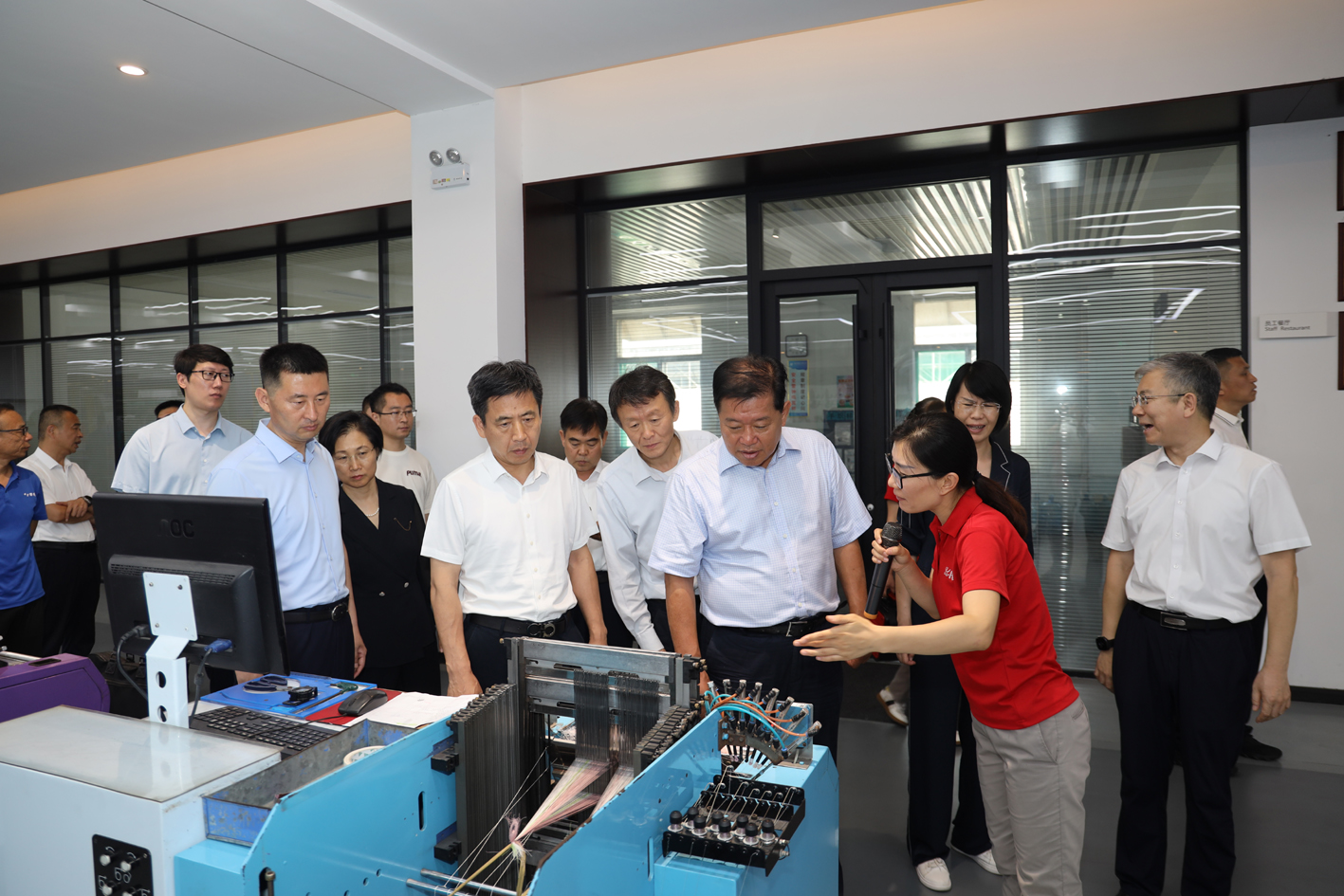 6月18日,省政協(xié)黨組副書記、副主席、省紡織服裝產(chǎn)業(yè)鏈“鏈長”林峰海率省工業(yè)和信息化廳副廳長王曉一行來公司就省紡織服裝產(chǎn)業(yè)鏈重點(diǎn)企業(yè)發(fā)展情況進(jìn)行調(diào)研。淄博市政協(xié)黨組書記、主席張延廷,市政協(xié)黨組成員、秘書長于康梅,市工信局黨組書記、局長張亮云,淄川區(qū)委副書記、區(qū)長馮炳濤,區(qū)政協(xié)主席李庭,公司黨委副書記張守剛等領(lǐng)導(dǎo)陪同調(diào)研。